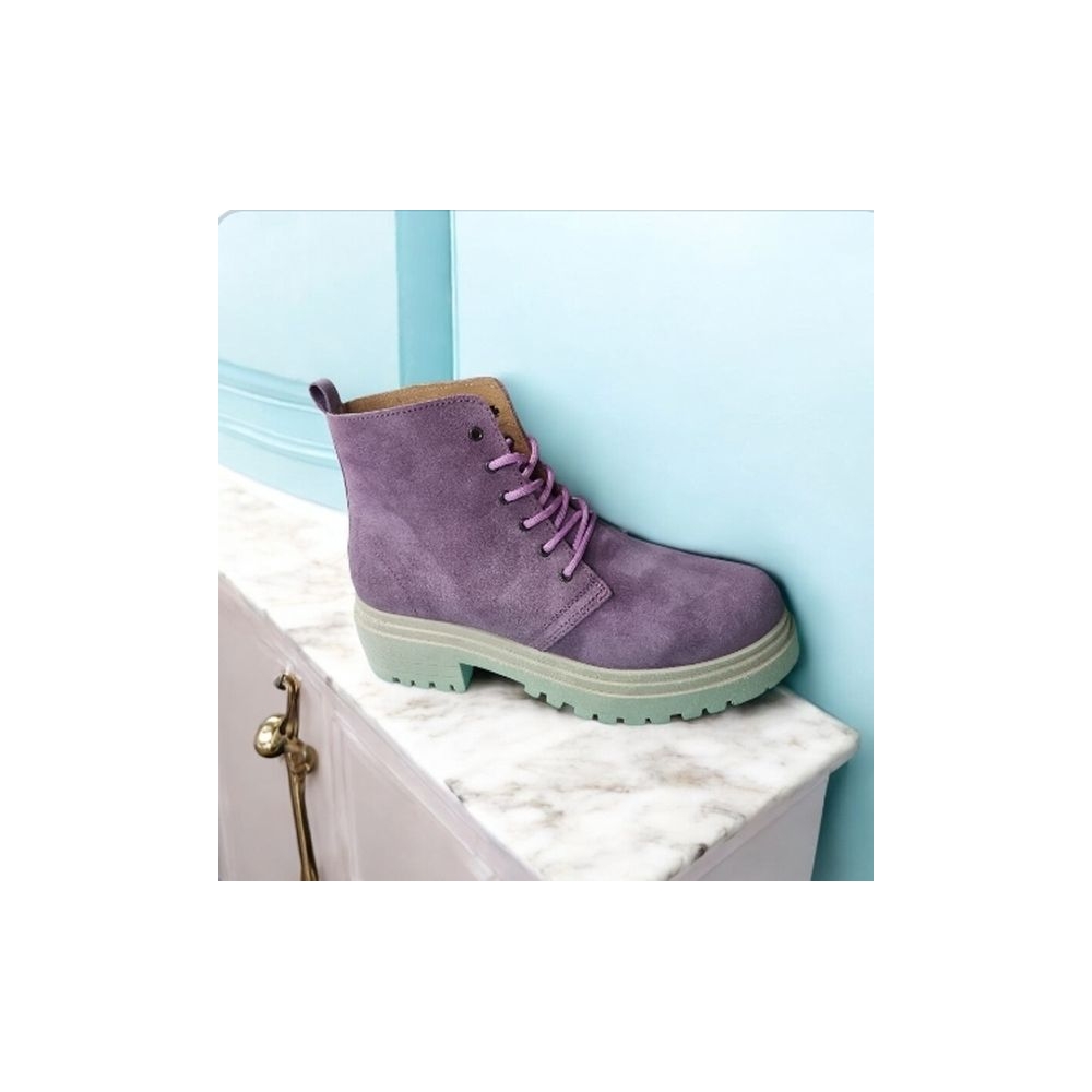 Bota Piel Serraje Estilo Dr Martens Color Lila