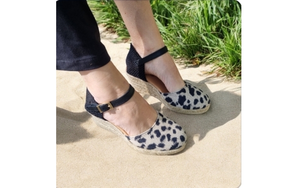Atrévete a marcar tendencia con nuestras nuevas alpargatas de mujer estampadas en animal print de leopardo negro , una propuesta audaz y sofisticada que fusiona moda, comodidad y autenticidad. Este diseño exclusivo combina el carácter salvaje del animal print con la elegancia de la trasera y cinta en negro , dando lugar a un calzado versátil, ideal tanto para looks urbanos como para escapadas de verano.