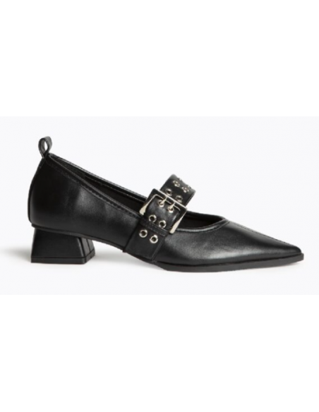 Zapato salón de la marca Corina , elegante y cómodo gracias a su tacón cuadrado que aporta estabilidad sin perder estilo. Diseñado con puntera afilada , cierre con hebilla ajustable y delicados adornos plateados que le dan un toque cómodo y versátil.